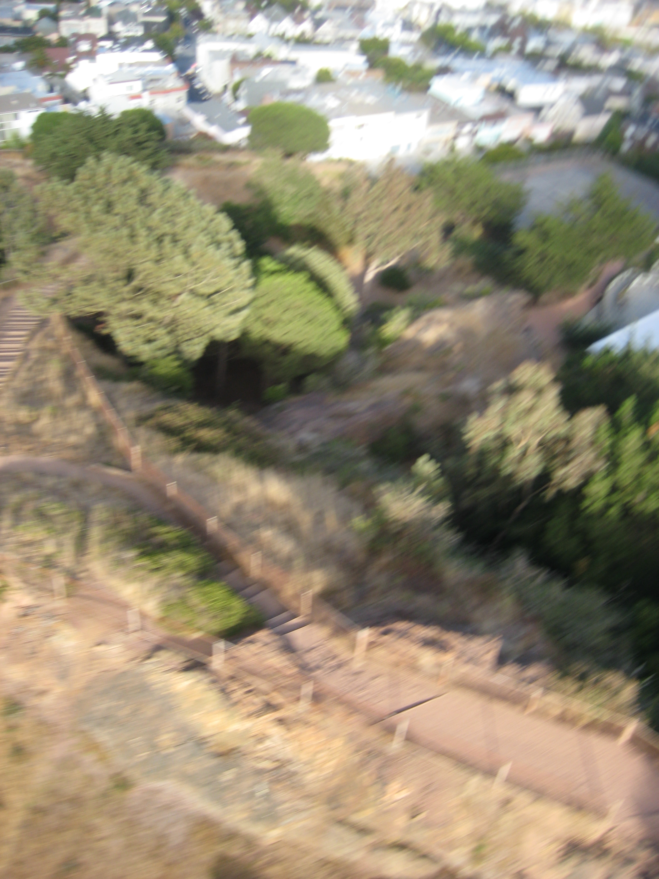 | Blurry shot of the steps leading up to the Corona Heights Park peak. |