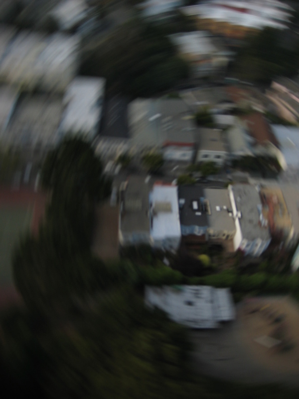 | The first photo taken by the balloon camera at Corona Heights: the cord reel. |