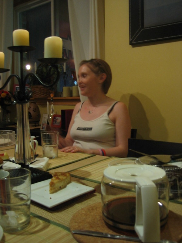 Holly, Devin, Kitty, and Jay sitting around the table chatting |