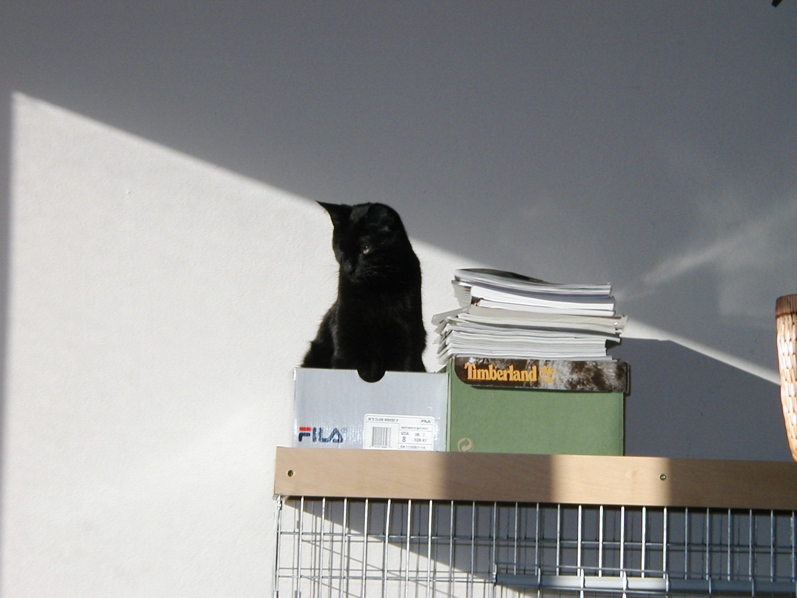 | Moy-Chan in a shoebox on the rabbit house |
